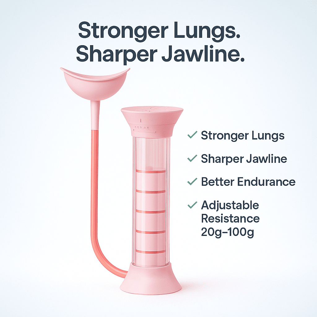 The resistance-based breathing activates supporting muscles in your mouth, jaw, and neck, contributing to a more defined jawline with consistent training.
